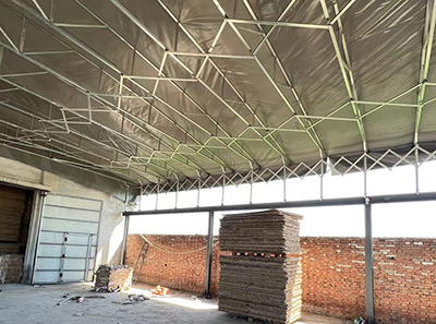 1、工厂行业:电动推拉棚可以有效地保护工厂内的货物和设备免受恶劣天气条件(如雨水、风沙等)的影响。它们覆盖在货物堆放区或设备上方,形成一个可靠的屏障,防止物品受潮、受污染或受到损坏。