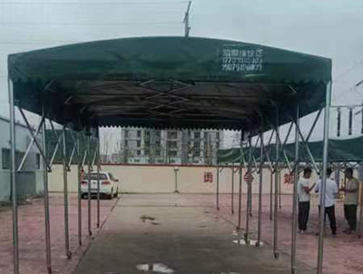 推拉棚的支架一般采用钢架结构,具有较高的承载能力和稳定性,能够抵御风雨等自然因素的影响。顶棚则采用防水材料制成,可以有效地防止雨水渗透,保证内部空间的干燥和舒适。同时,推拉棚还配备了推拉装置,可以方便地展开和收起,便于运输和存储。
